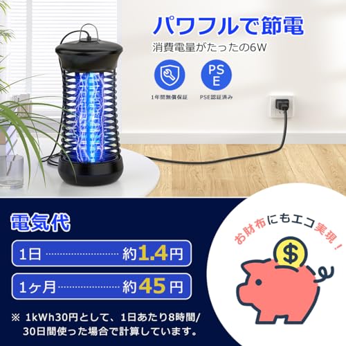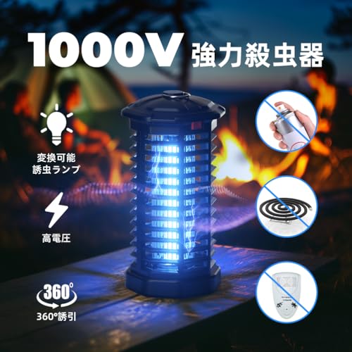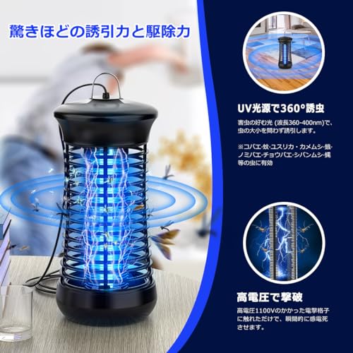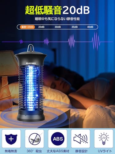 AUGYMER 電撃殺虫器 捕虫器 こばえとり 2Mコード付き 360°強力蚊除け UVランプ